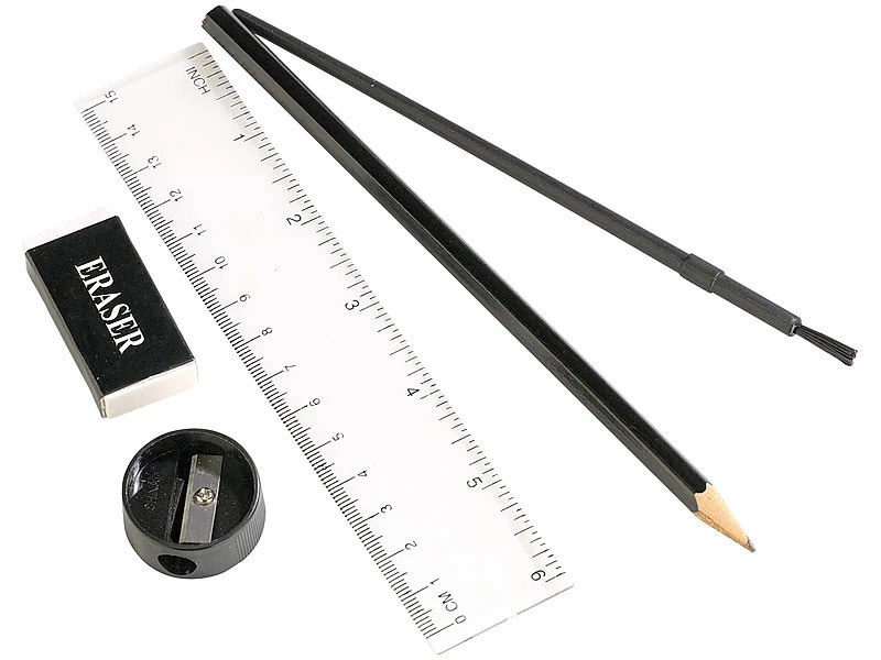 - Accessoires : Règle 15 cm, crayon, pinceau, blanc opaque, gomme, taille-crayon