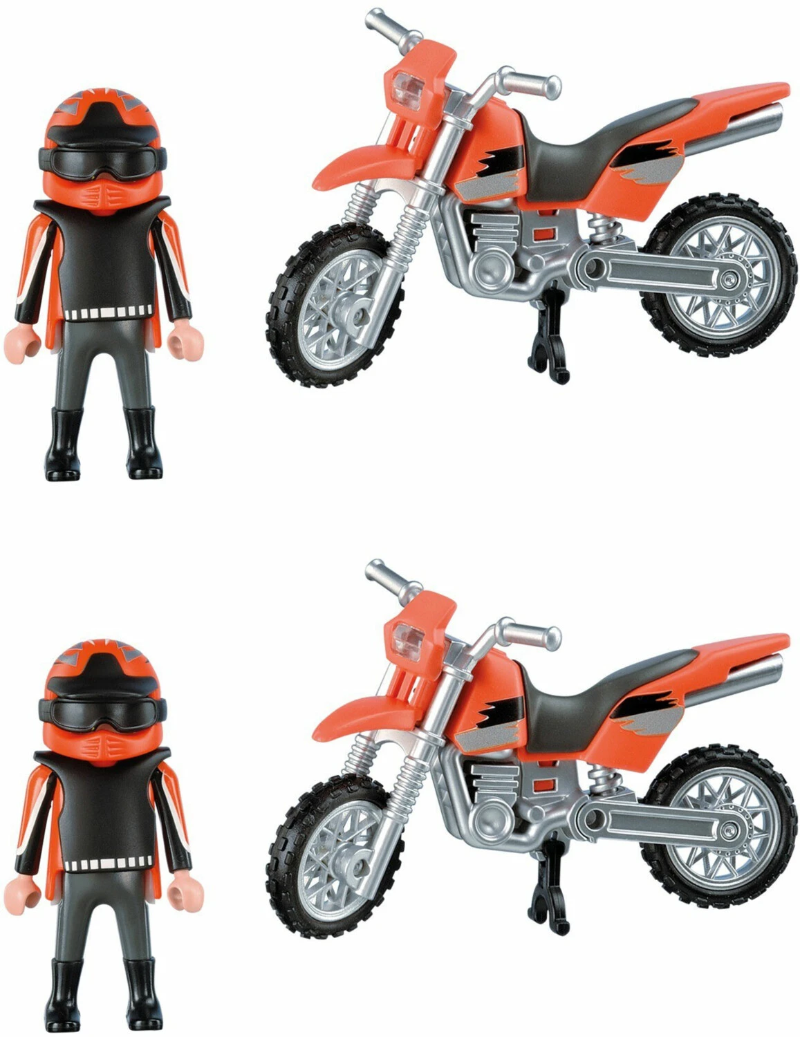 - Ce lot comprend 2 packs avec 1 moto, 1 personnage Playmobil et 1 casque de moto