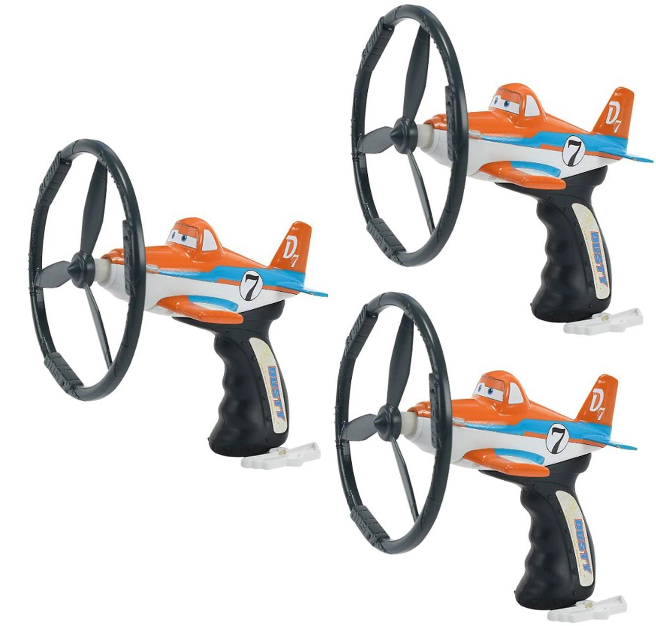 Tout comme le jouet Supercharged de Mattel, ce jouet qui met en scène le gentil avion Dusty propulse une hélice en l’air et sa forte rotation lui permet de planer sur plusieurs mètres. La différence est que cette version ne possède pas de goupille mais une corde installée dans la crosse, qui rentre automatiquement après avoir propulsé l’hélice !