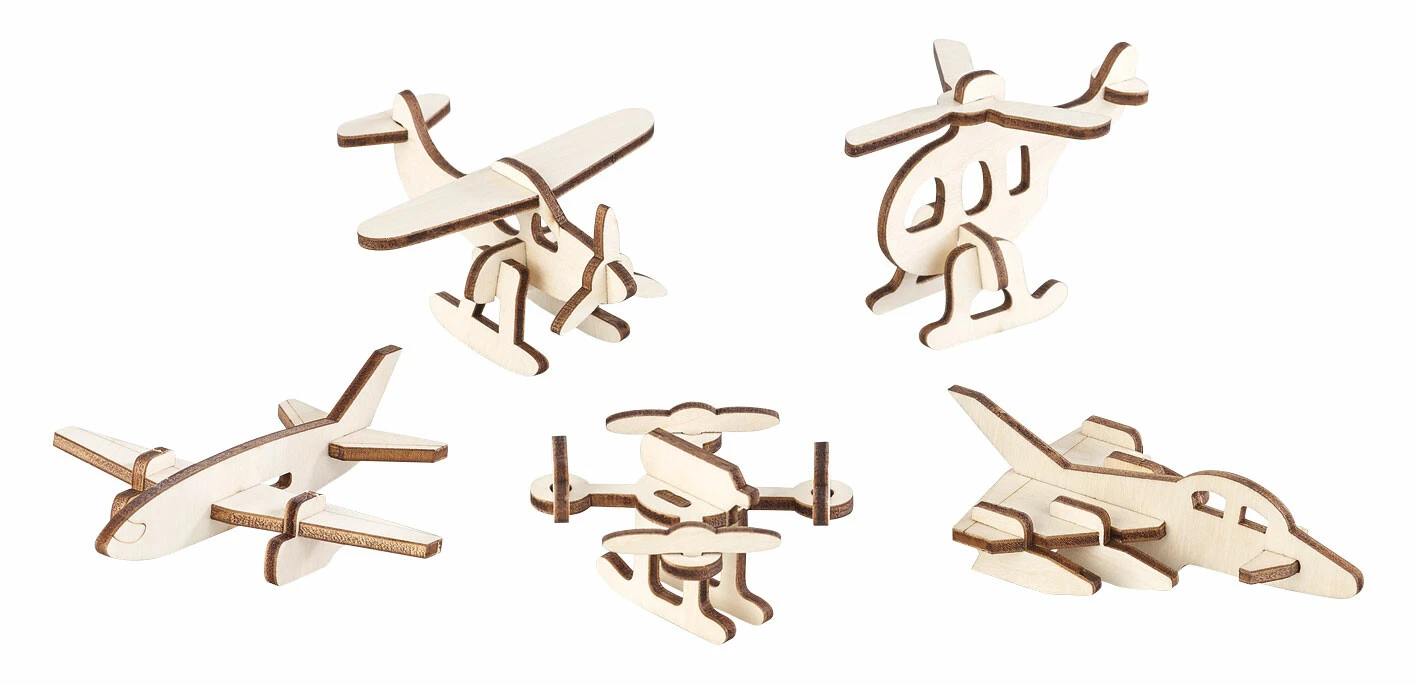 Un vrai bonheur pour les modélistes en herbe : vous n’avez pas besoin d’outils pour le montage. Il suffit de presser les différentes parties des machines volantes hors de la plaque en bois et de les assembler. Les kits de construction en bois 3D sont parfaits pour initier les enfants au modélisme. Afin de créer de véritables pièces uniques, chaque pièce peut être peinte ou laissée brute.