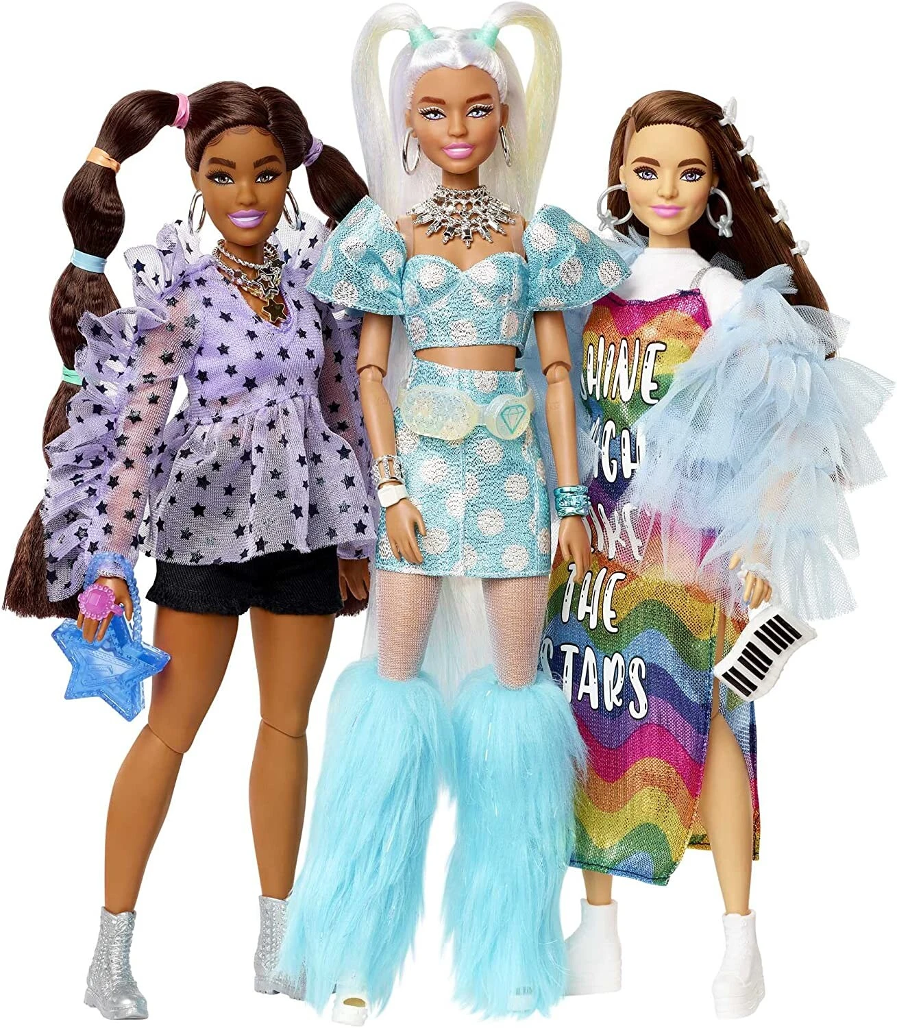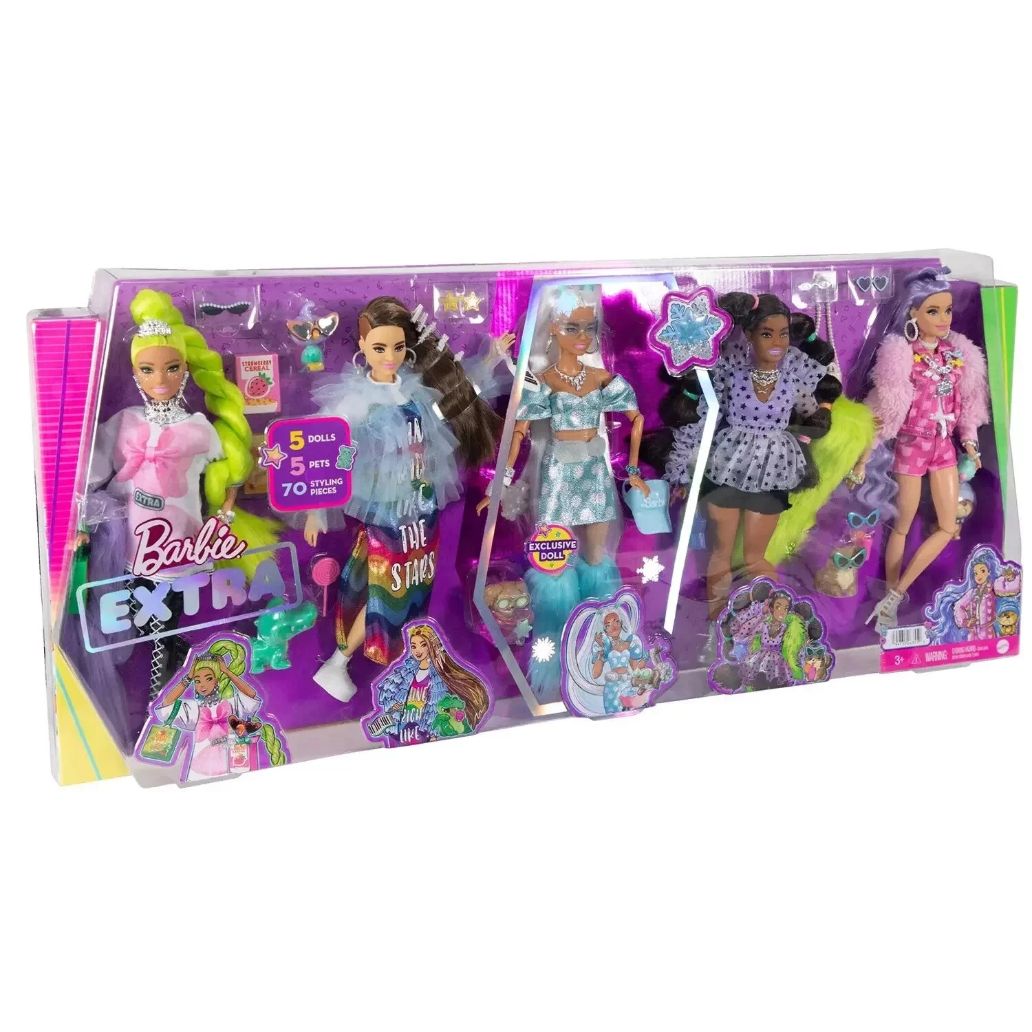 - Lot de 5 poupées Barbie Extra avec 70 accessoires et 5 animaux par Mattel