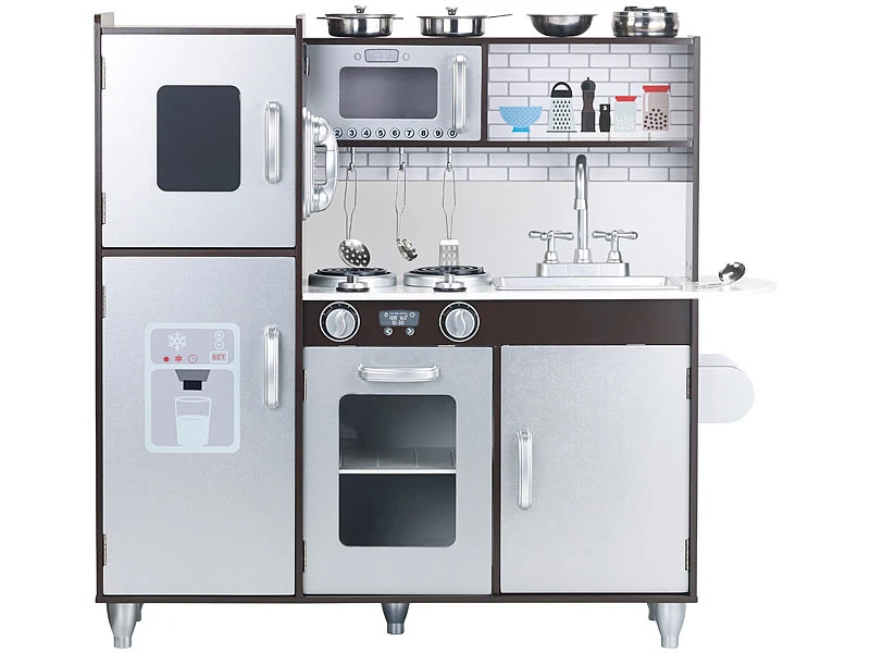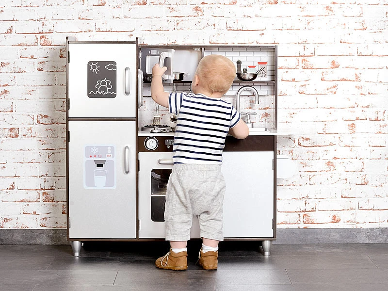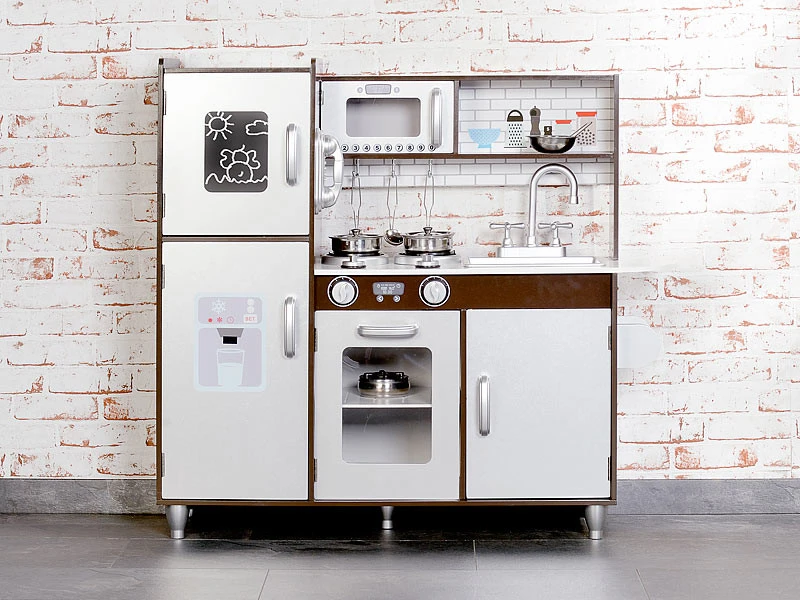 Voici le rêve des petits cuisiniers en herbe, qu’ils soient garçon ou fille, s’ils souhaitent préparer le repas comme les grands. Comme une véritable cuisine, celle-ci est équipée d’appareils électroménagers qui sont ici factices : cuisinière, four, réfrigérateur, micro-ondes et évier sont à la disposition des petits chefs, qui ont ainsi tout l’équipement nécessaire pour préparer des mets délicieux, exactement comme leurs parents.