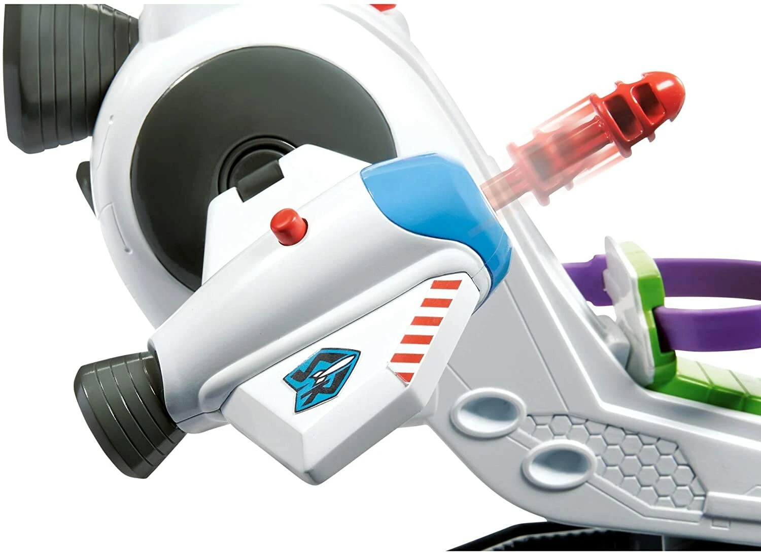 En route pour de nouvelles aventures à travers la galaxie ! Buzz l’Éclair monte à bord de son vaisseau d’exploration pour aller visiter l’espace. Appuie sur la gâchette pour attraper des objets avec la grande pince robotisée. En cas d’attaque extraterrestre, le vaisseau d’exploration galactique déploie ses 2 lanceurs de projectiles !