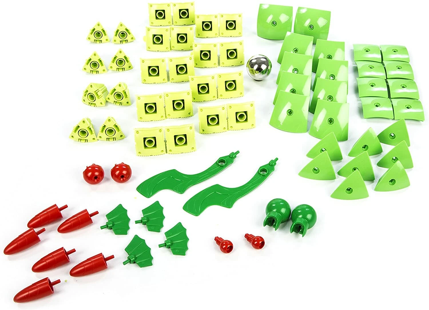 - Contient : 1 bille en fer, 52 éléments magnétisés, 4 ailerons, 2 queues, 6 éléments pour les yeux, 6 cornes