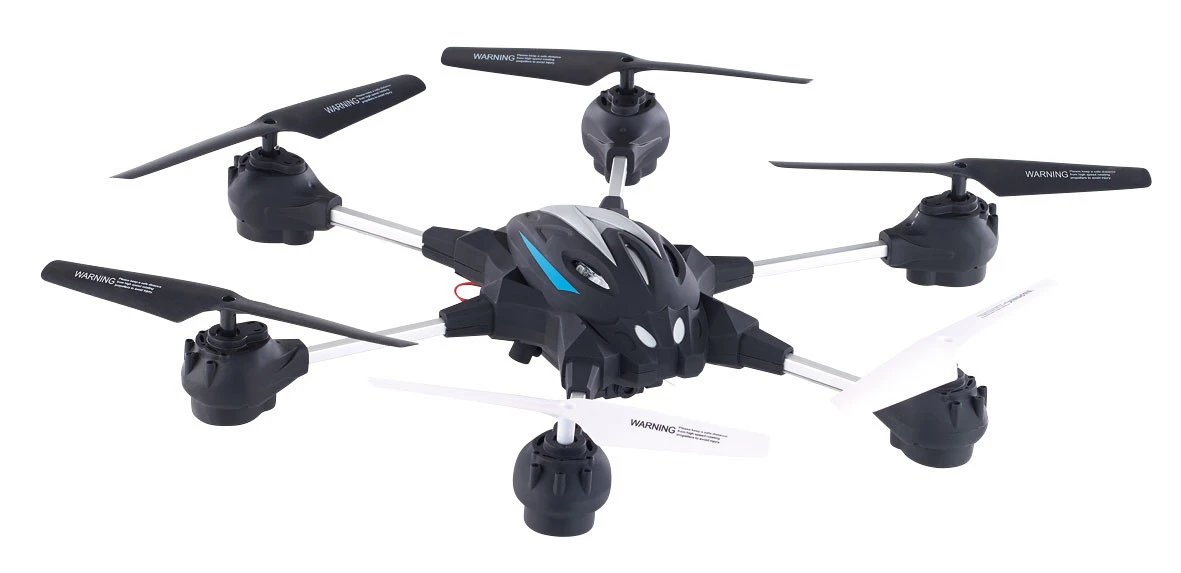 Grâce au gyroscope à 6 axes, aux 6 rotors avec moteur, au contrôle de la position et à une télécommande à 4 canaux configurable, fendez les airs comme un pro.