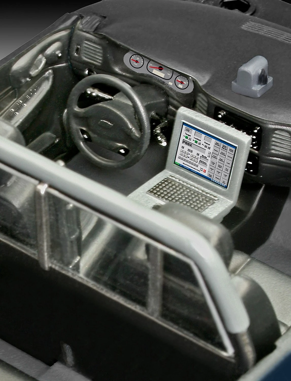 Revell vous propose une maquette à l’échelle 1:25, avec de nombreux détails comme le PC connecté au Central installé dans l’habitacle ! Une jolie maquette accessible à tous qui amusera les plus jeunes et rappellera les séries policières américaines aux plus grands.