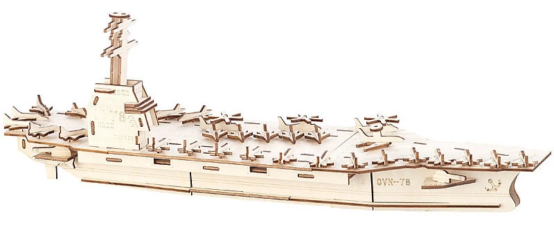 Inspirée du porte-avions USS Gerald R. Ford, la maquette reproduit de nombreux détails : passerelle de commandement, pièces d’artillerie, pont et piste d’atterrissage, mais aussi 32 aéronefs (avions et hélicoptères) pour des heures de jeu.