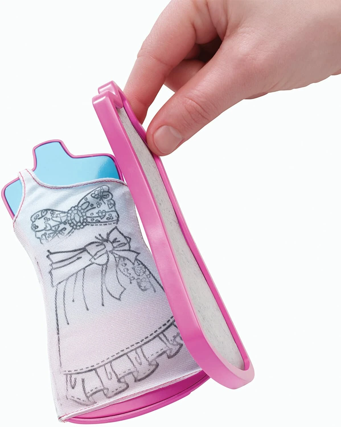 La belle Barbie te sert de mannequin pour porter tes créations les plus folles. Utilise les robes fournies dans le kit, dessine des motifs sur l’applicateur et transfère tes créations sur la robe.