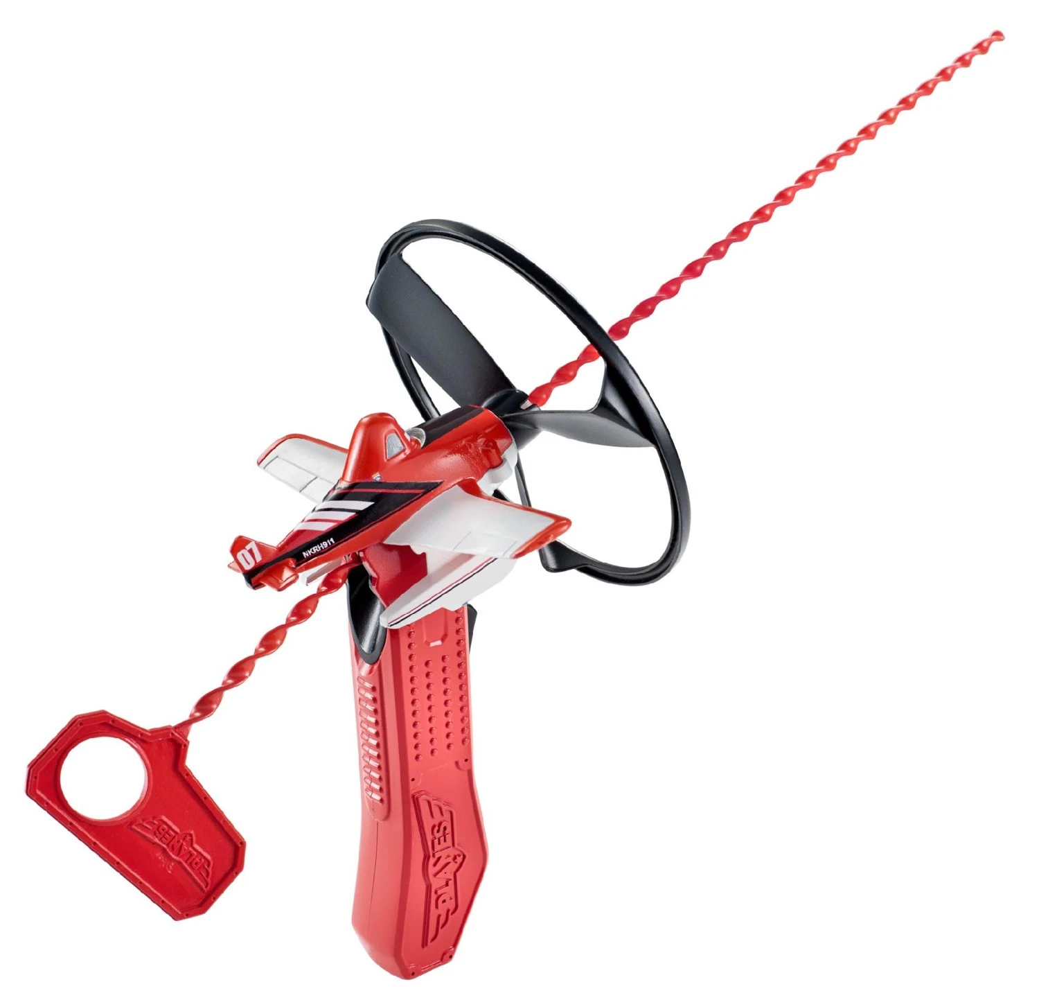 Prends le pistolet, place ton avion dessus et tire sur la goupille : sans électricité, l’hélice se met à tourner et ton avion s’envole jusqu’à 5 m !