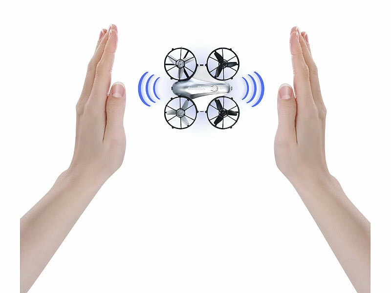 Le petit quadricoptère se démarque par ses contrôles simples : un bouton pour décoller sans stress, une fonction flip intégrée, et un bouton d’atterrissage. Autant dire que le drone se pilote presque tout seul ! De plus, son gyroscope à 6 axes et son armature légère le rend bien plus maniable, y compris pour les débutants. Contrôlez le quadricoptère par le biais de sa télécommande ou encore avec votre main ! L’appareil identifie certains gestes simples, comme « arrête-toi » ou encore « approche ».