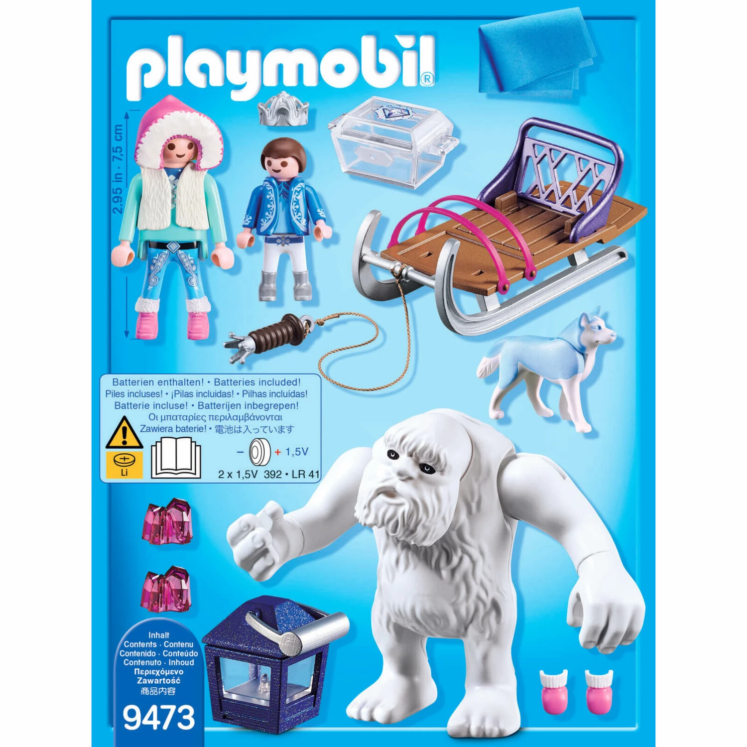 - La boîte contient deux personnages, un Yéti, un loup, une lanterne qui scintille (piles incluses) et coffre en cristal et de nombreux accessoires