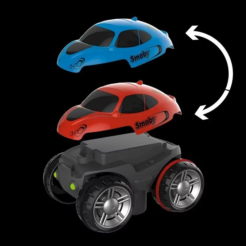 - Composé de 184 éléments de pistes flexibles pour réaliser un circuit de 4m40, un véhicule avec deux carrosseries interchangeables et une piste d’entrée/sortie.