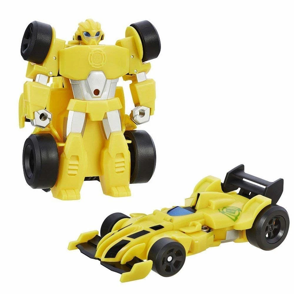 Le jeune Autobot Bumblebee a décidé d’être encore plus rapide : maintenant, il peut se transformer en une véritable Formule 1 pour poursuivre tous les Decepticons, leurs ennemis jurés ! Inspiré du dessin animé Transformers Rescue Robots, ce robot transformable passe en quelques secondes du robot de 16 centimètres à une Formule 1 qui roule vraiment, en utilisant la technique de la rétrofriction : tire puis relâche pour voir Bumblebee foncer à toute vitesse !